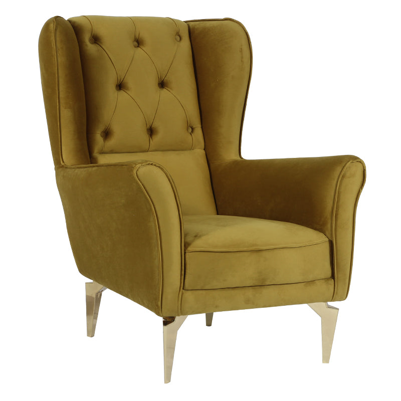 Artekko Ciol Μπερζέρα με Καπιτονέ Πλάτη και Πλαστικό Πόδι σε Χρυσό Χρώμα (86x95x103)cm