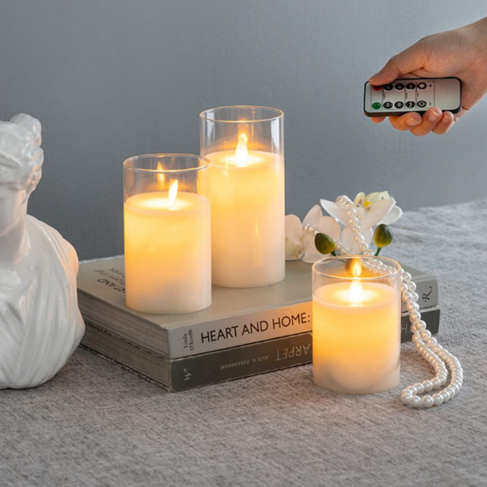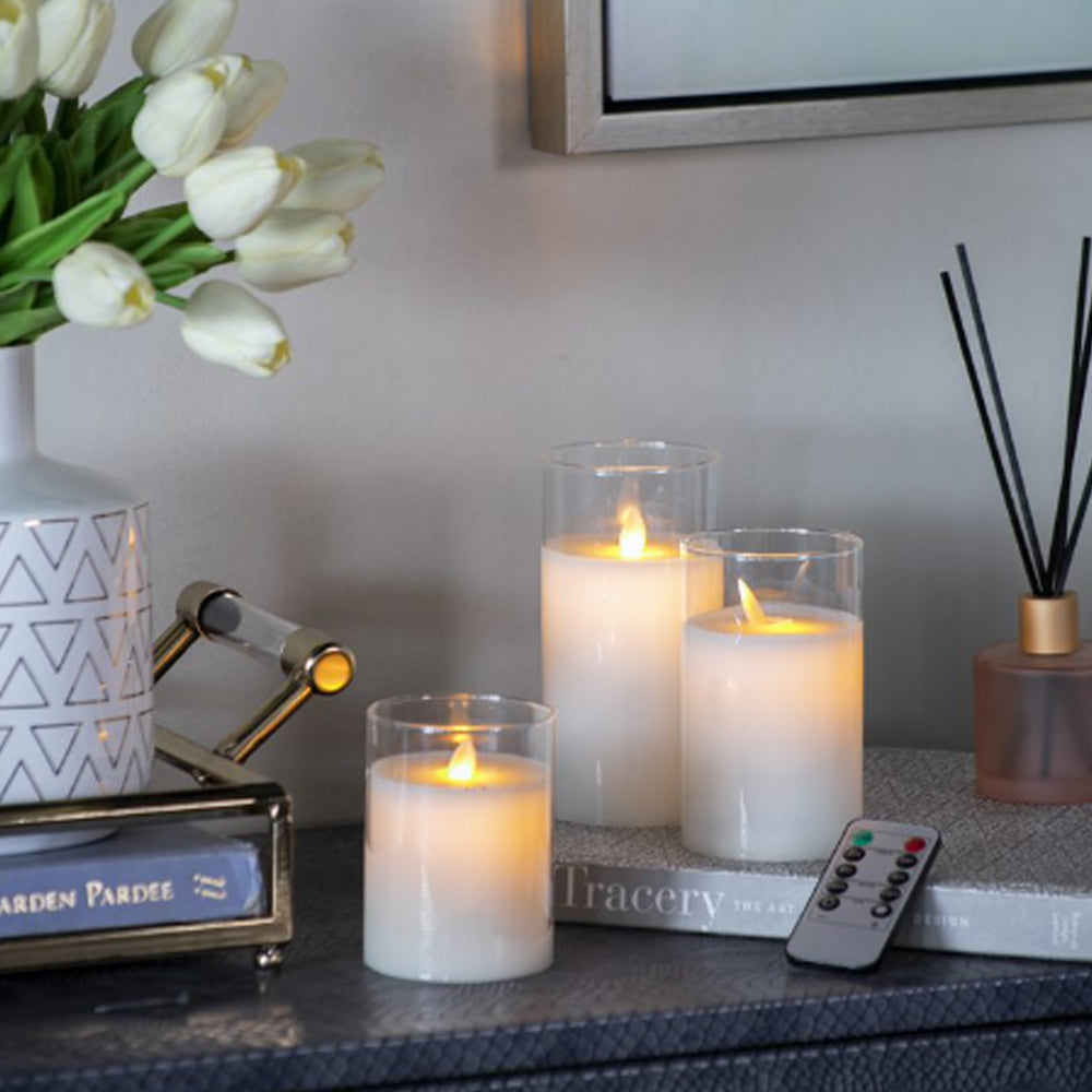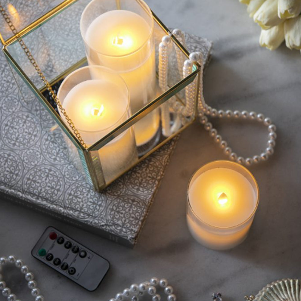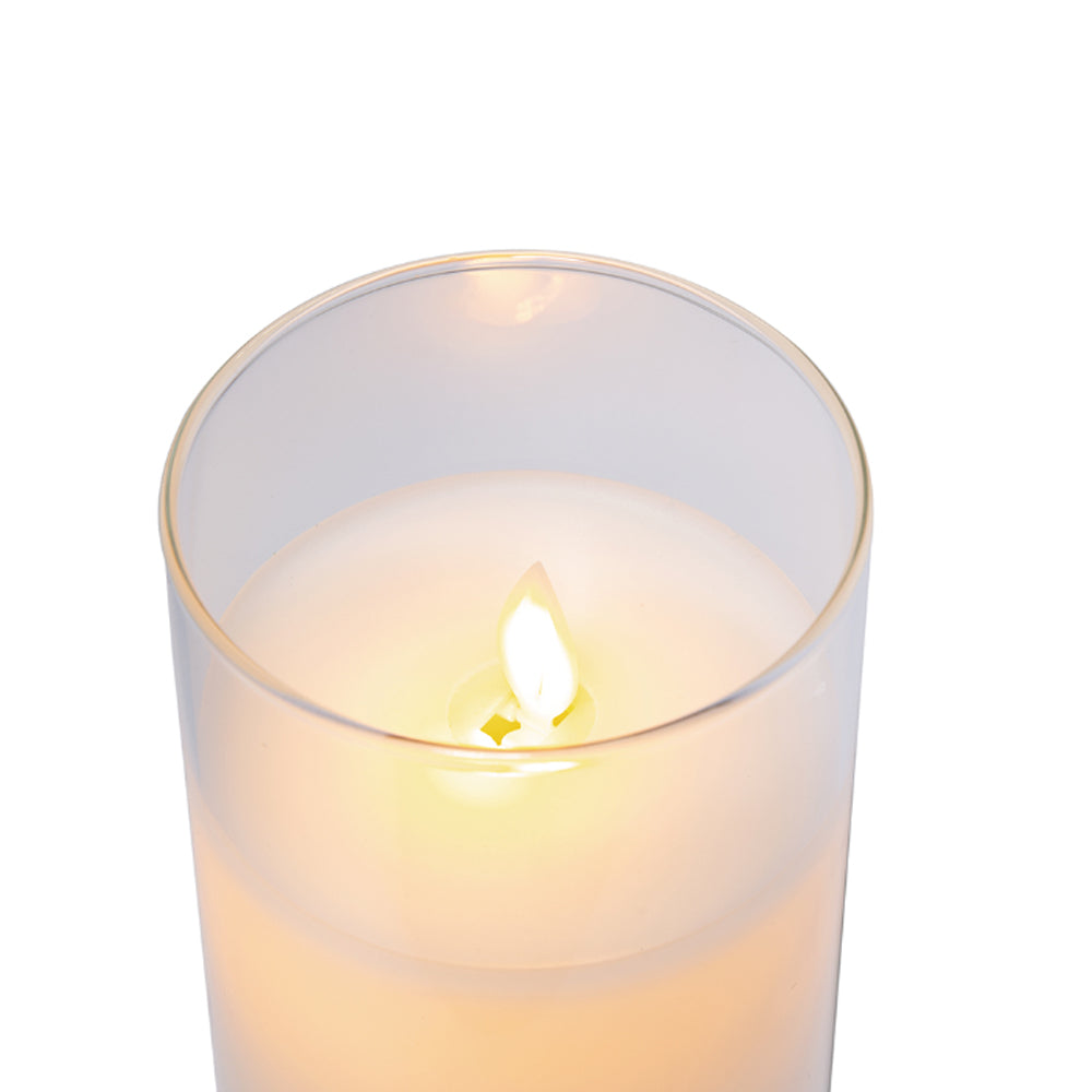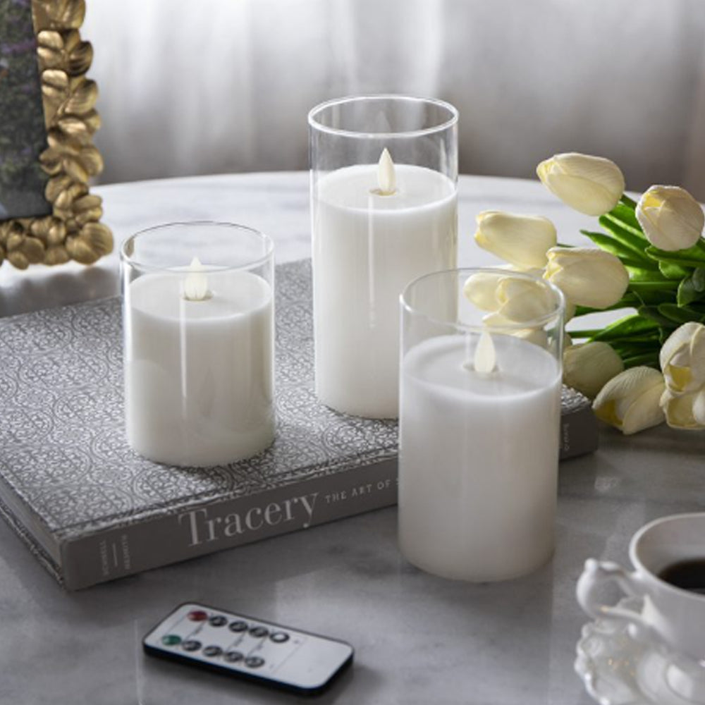 Flame Κερί Led με Τηλεχειριστήριο Γυαλί Κερί Λευκό Σετ/3