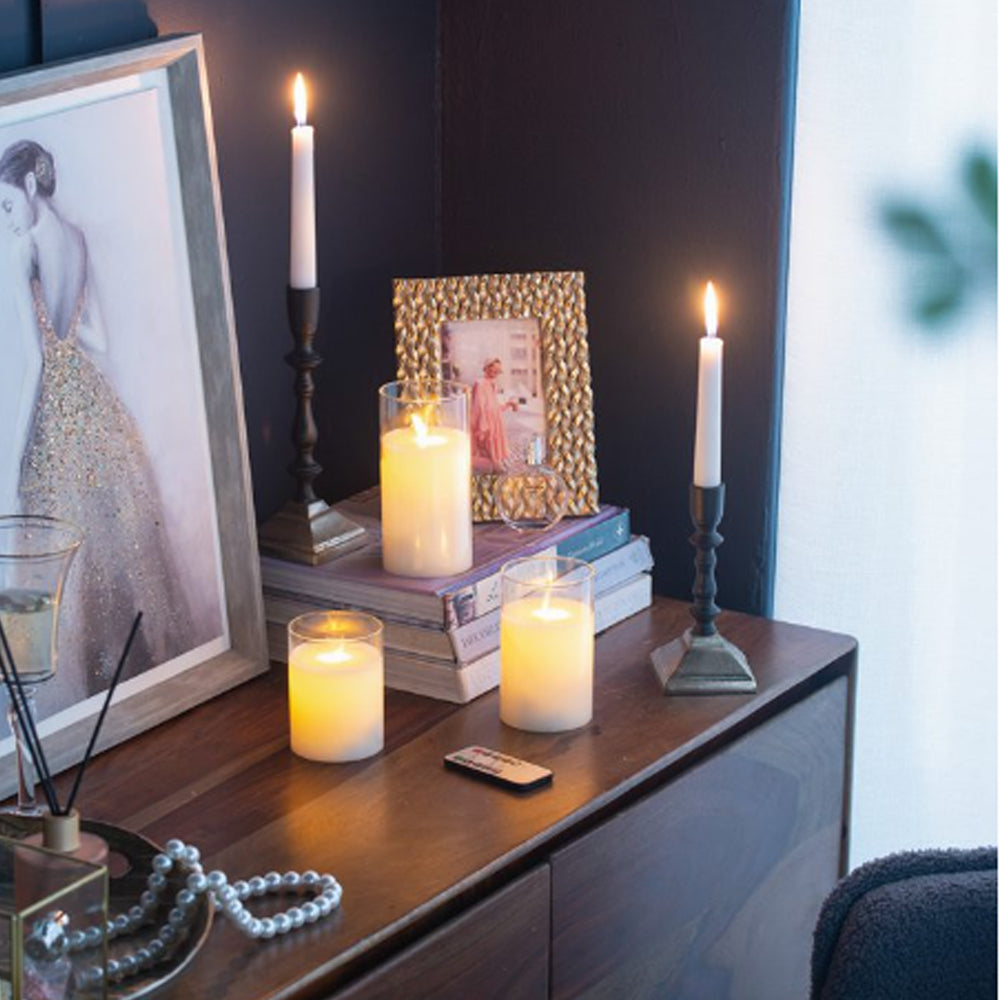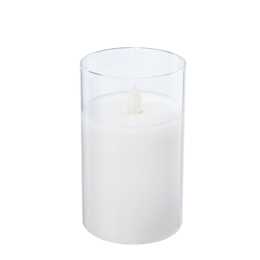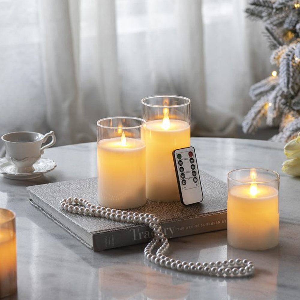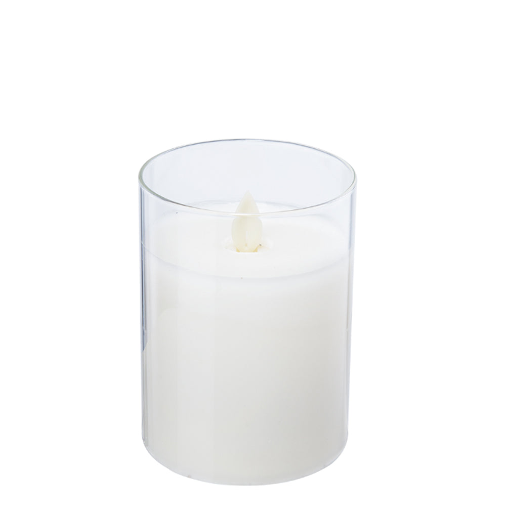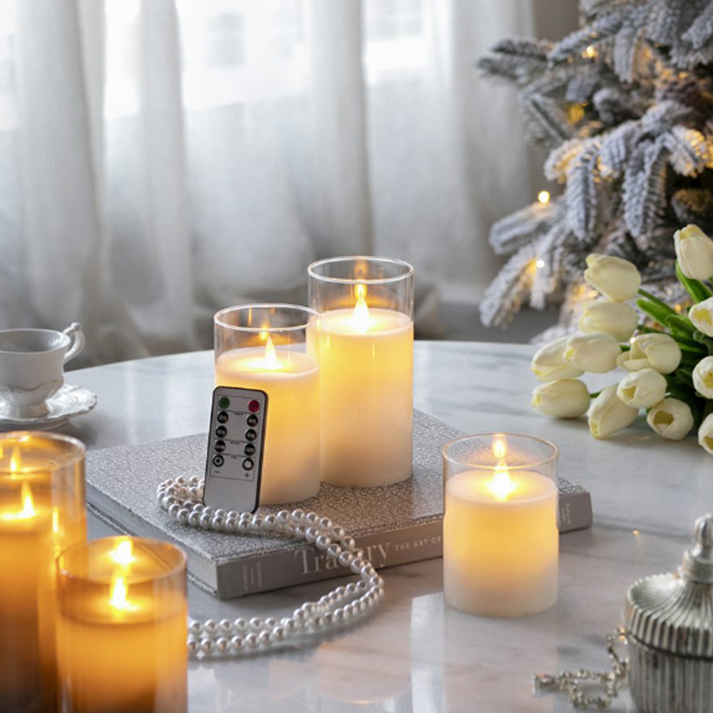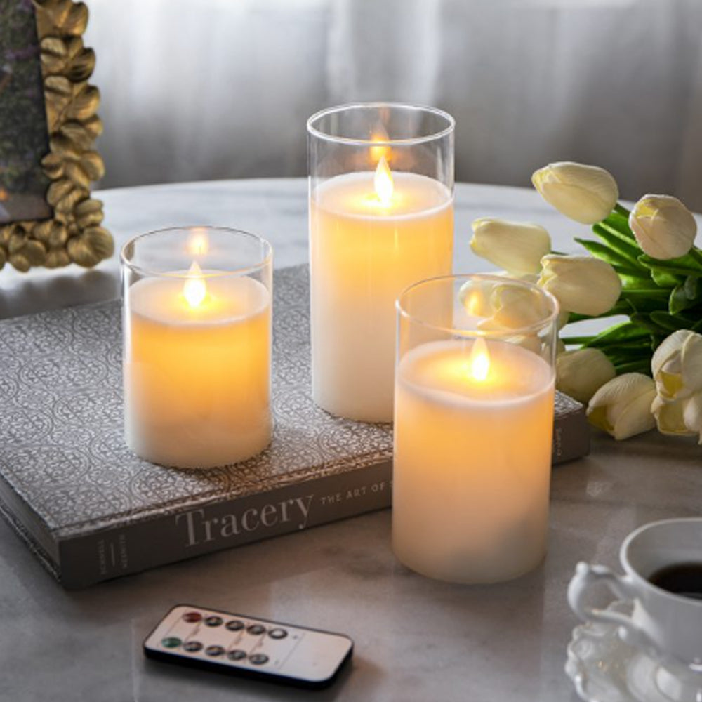 Flame Κερί Led με Τηλεχειριστήριο Γυαλί Κερί Λευκό Σετ/3
