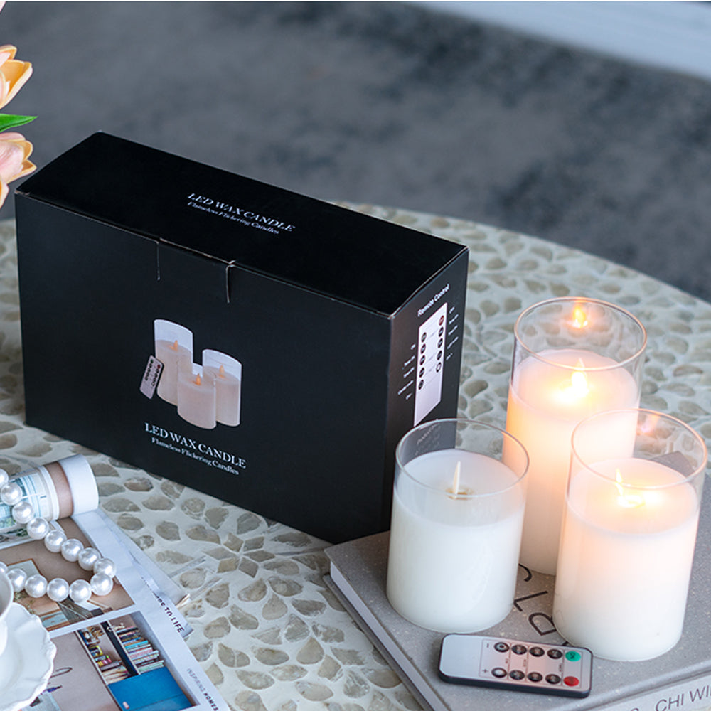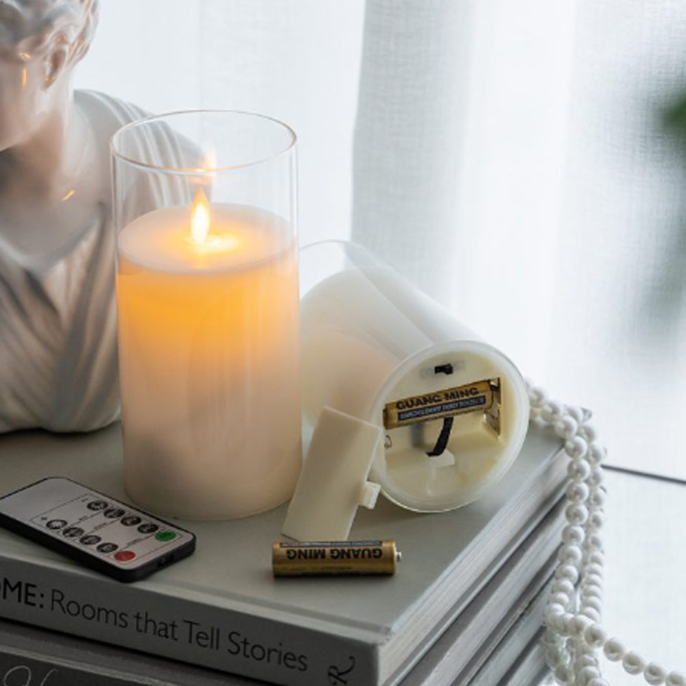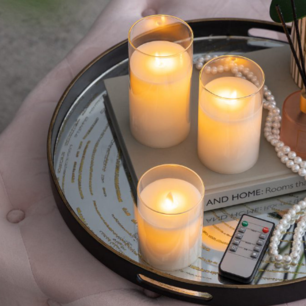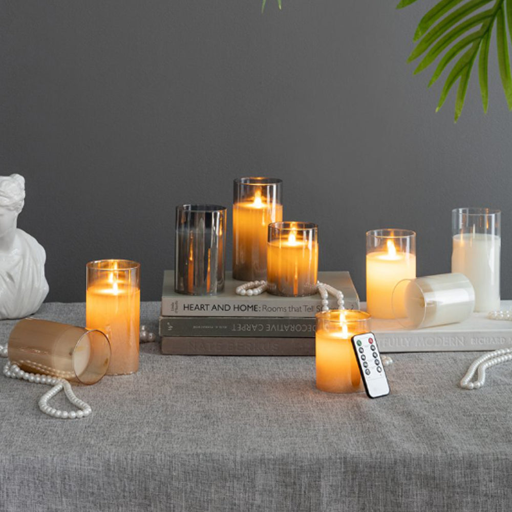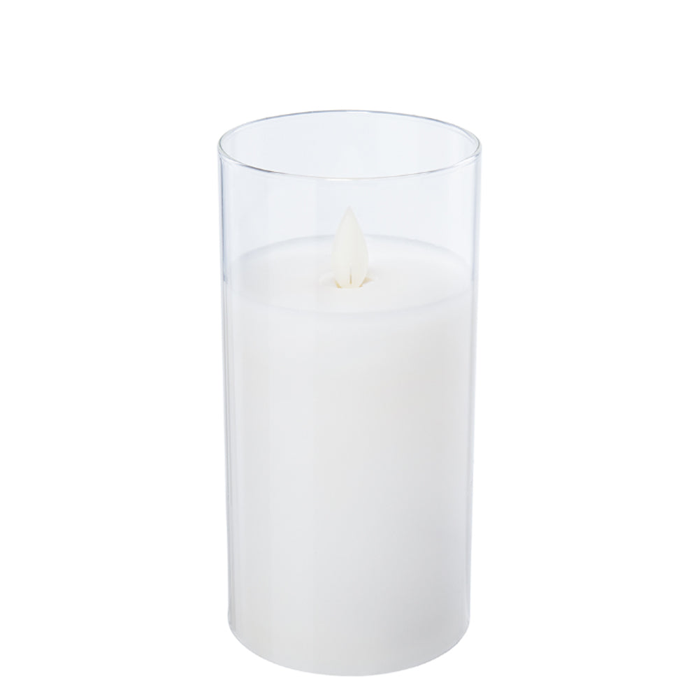 Flame Κερί Led με Τηλεχειριστήριο Γυαλί Κερί Λευκό Σετ/3