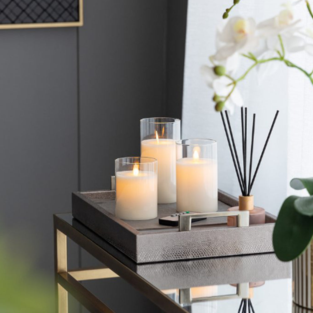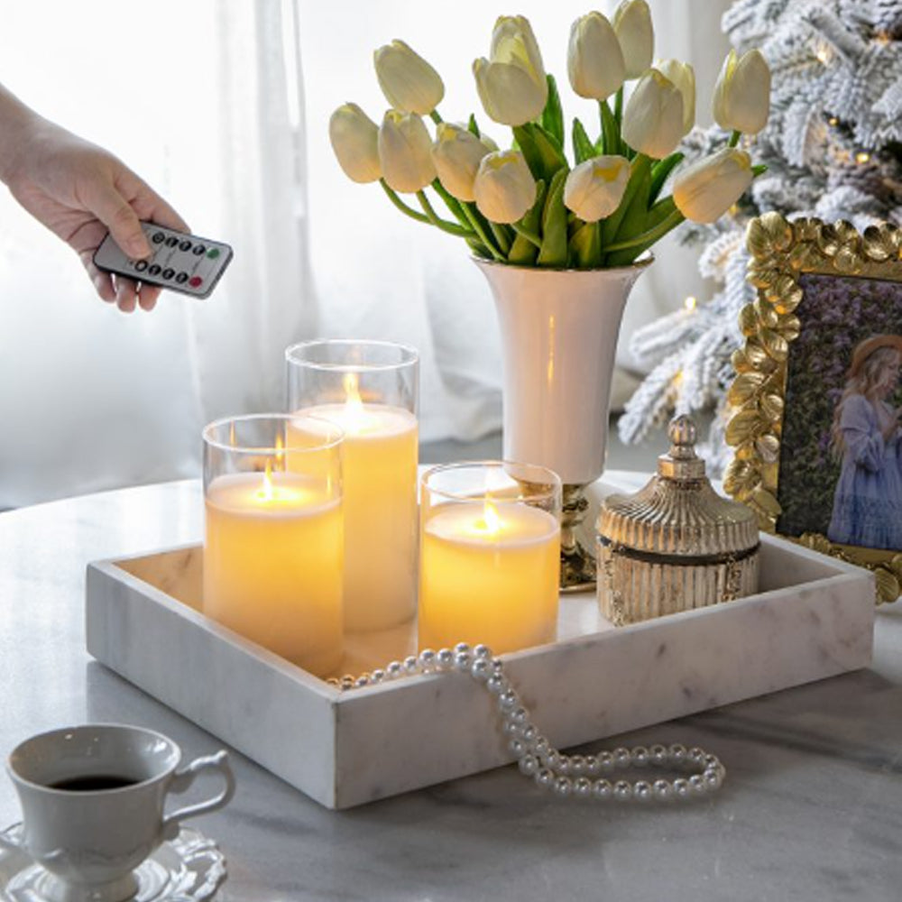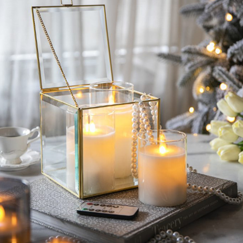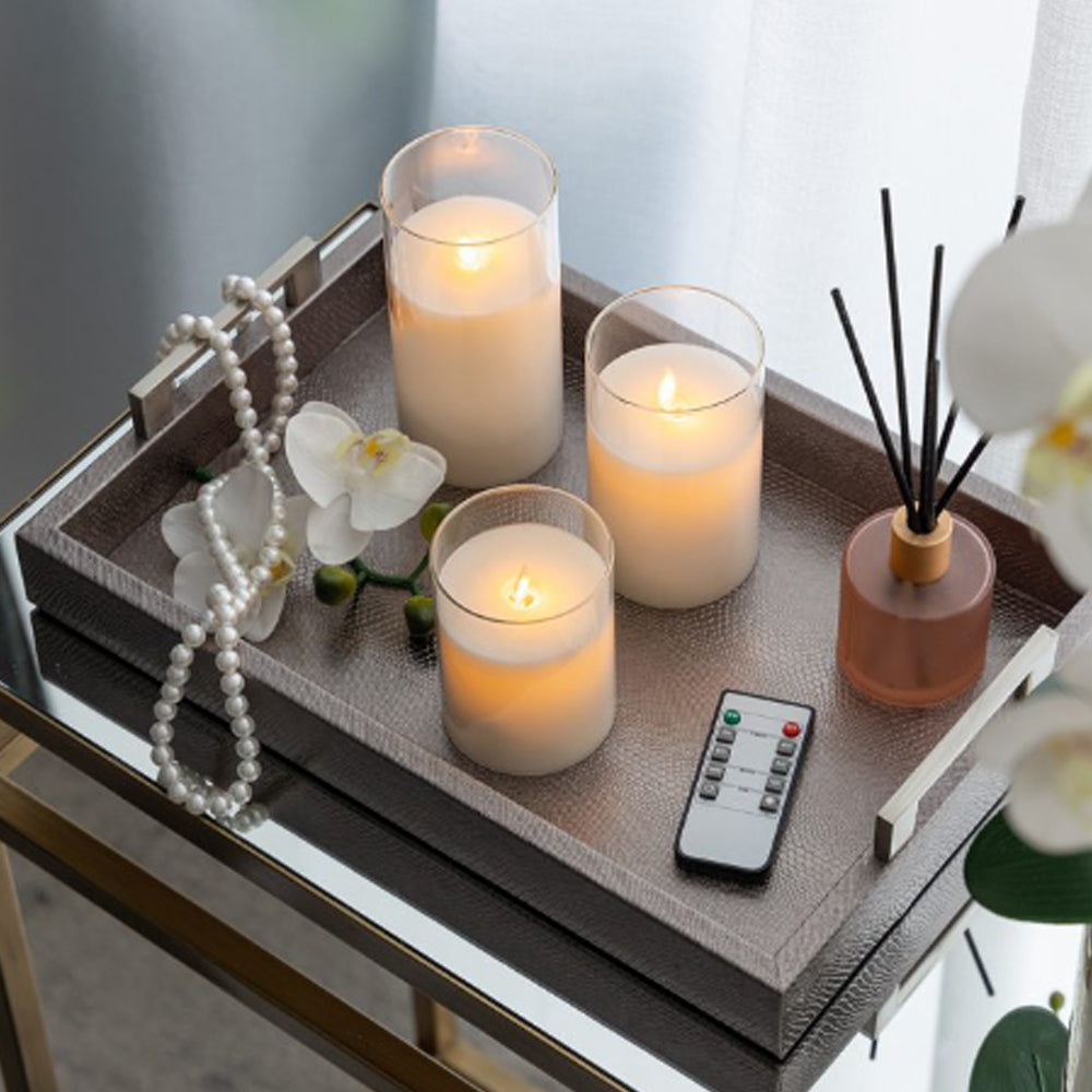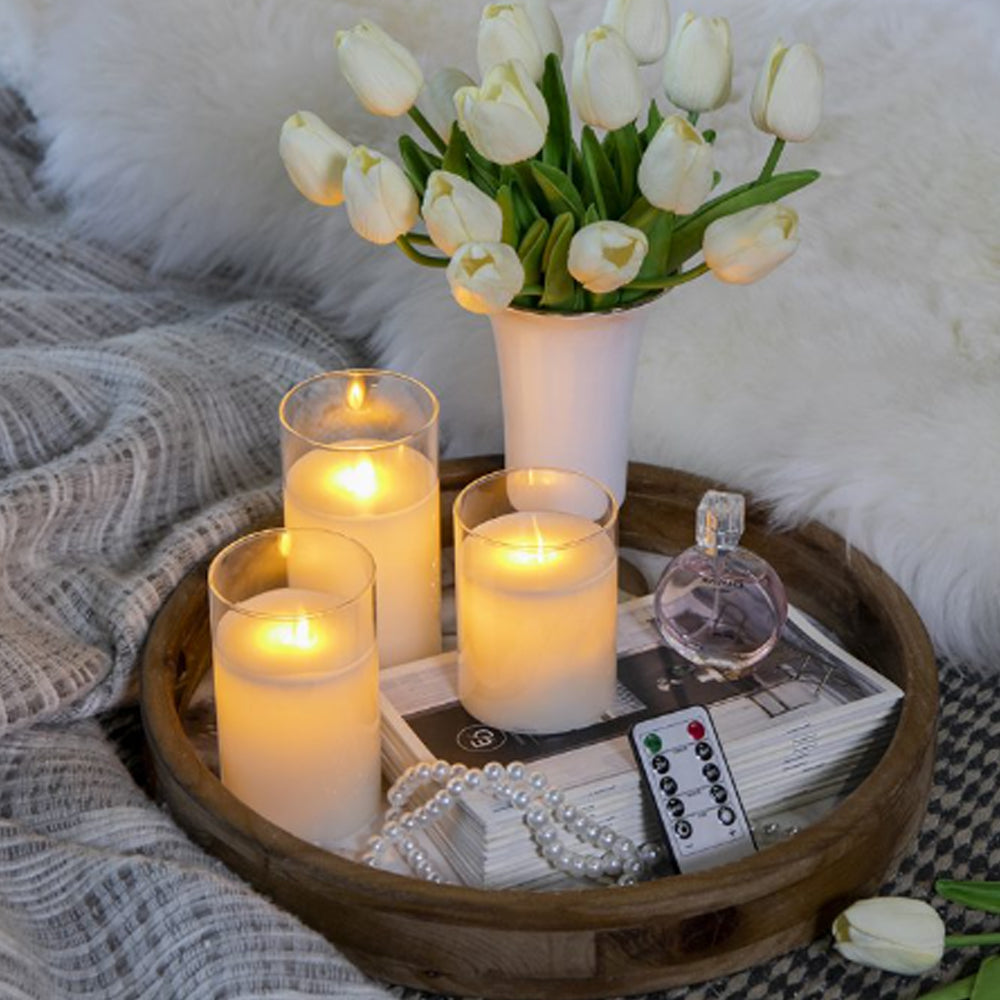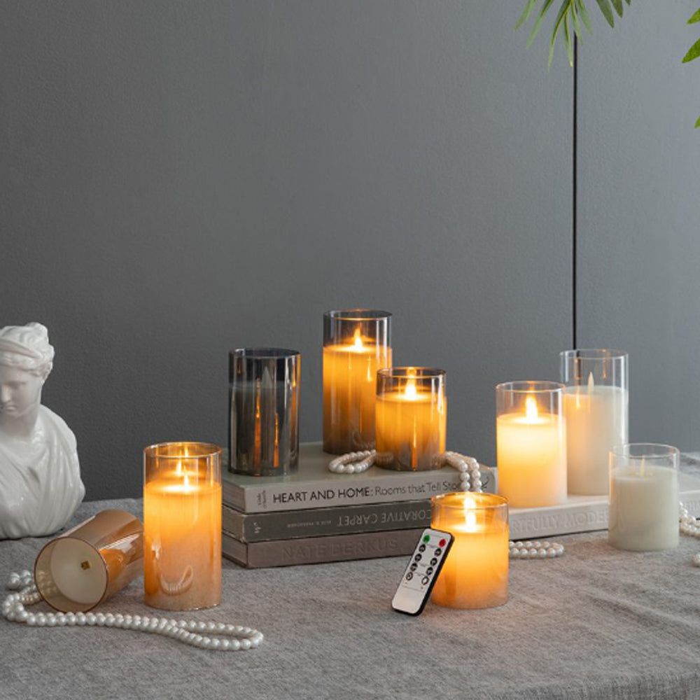 Flame Κερί Led με Τηλεχειριστήριο Γυαλί Κερί Λευκό Σετ/3