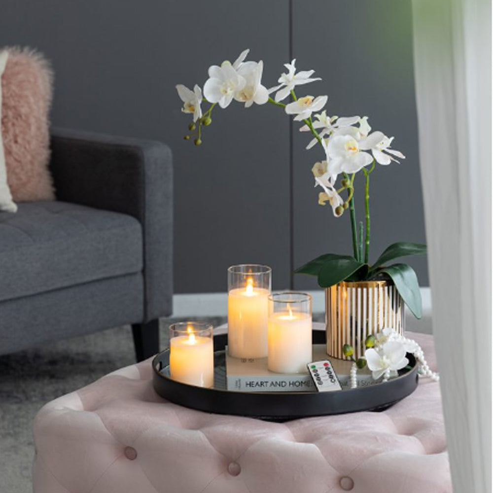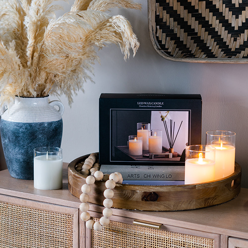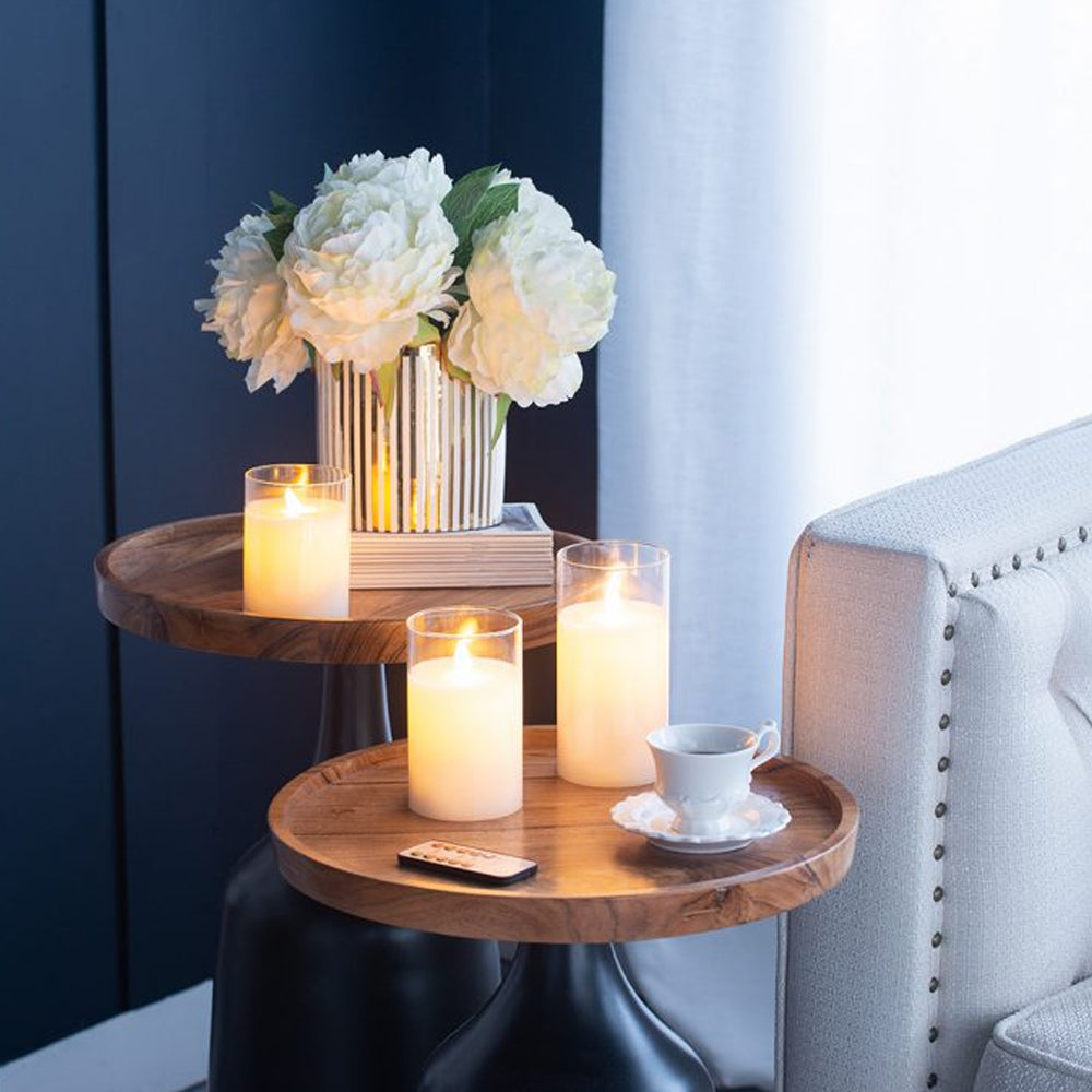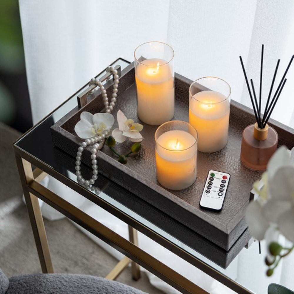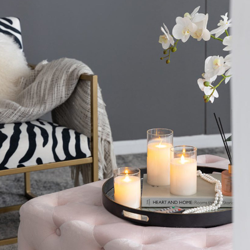 Flame Κερί Led με Τηλεχειριστήριο Γυαλί Κερί Λευκό Σετ/3