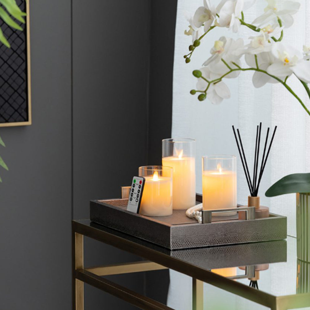 Artekko Flame Κερί Led με Τηλεχειριστήριο Γυαλί Κερί Λευκό (7.6x7.6x15.2)cm Σετ/3