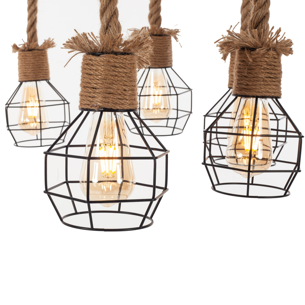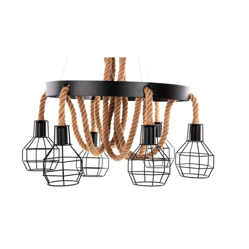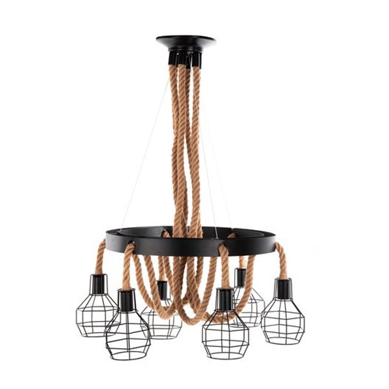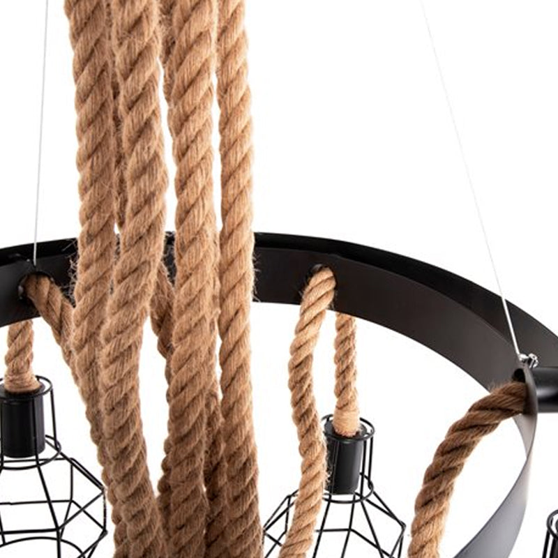 Hemp Rope Φωτιστικό Οροφής 8φωτο (Ε27) με Μαύρο Μέταλλο και Σχοινί