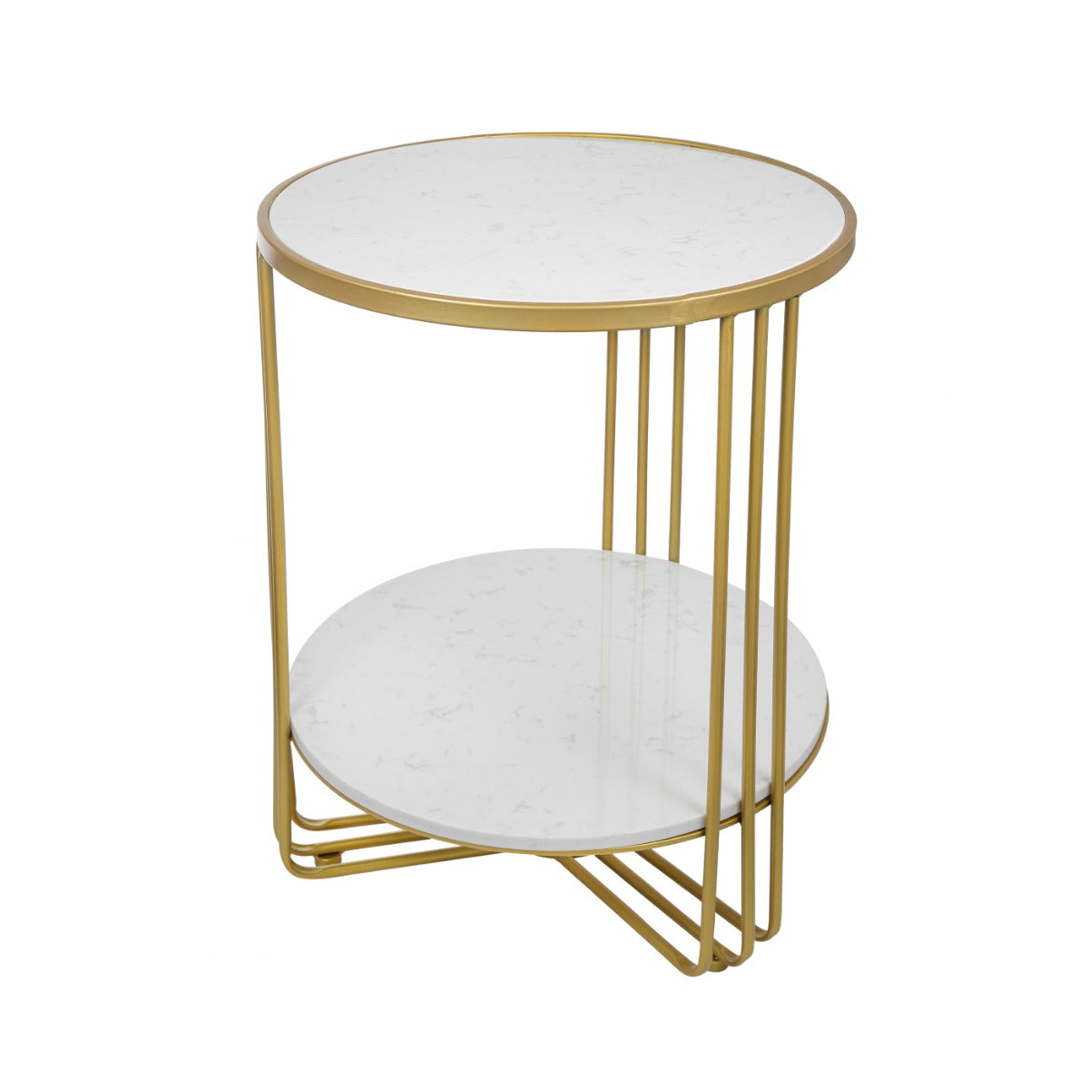 Marble Τραπέζι Βοηθητικό με Μάρμαρο Μέταλλο Λευκό Χρυσό