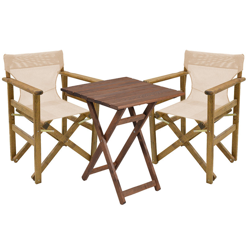 Tραπεζαρία κήπου Retto σετ 3τμχ μασίφ ξύλο οξιάς καρυδί-καραβόπανο εκρού 70x70x71εκ